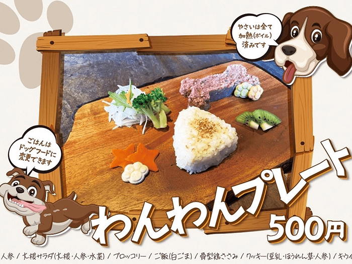 お食事は、安心して召し上がれるわんちゃん用メニューを有料・予約制にてご提供しております。